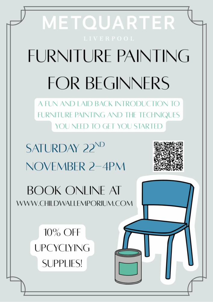 Taking place on Saturday 22nd November, guests are invited to come along to Childwall Emporium’s furniture painting class to learn how to upcycle their own piece of furniture and give pre-loved pieces a new lease of life. Learn how to prep your furniture, what paint can and should be used, how to use effective brush strokes for certain effects, what to use to finish your furniture and how to use waxes and lacquer.