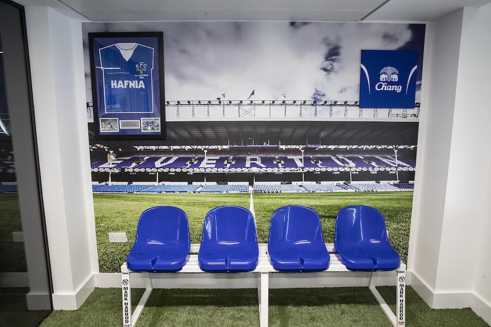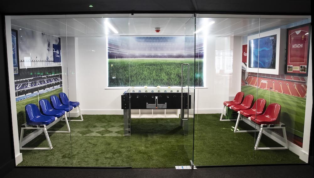 The new offices also feature a ‘Klopp/Kendall Suite’ complete with signed shirts from Sir Kenny Dalglish and Kevin Ratcliffe plus an indoor garden, table football machine and seats in blue and red set against Goodison Park and Anfield in order to pay homage to the rivalry and history between the city’s two major football clubs Liverpool FC and Everton FC.
